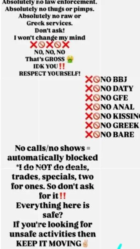 🩷🩶Hey gentlemen I’m Layy💋💋💋 here for u and all your needs🍑🍑 💋Respectful Gentleman Only‼‼ 🩷100% DISCREET 💋100% LEGIT 🤞🏽All donations are for my time and companionship only🤞🏽 💯💯By contacting me you agree that you are not affiliated with any law enforcement💯💯 I am poised, professional and always put together. 100% Independent. I provide SAFE clean, quality adult companionship💯🩶 I cannot wait to hear from you please let me know if you have certain requests for our time together and I’ll do my best to accommodate them.😘🩷🩶🩷🩶 Also hygiene is extremely important😊😘🫶🏼 🗣🗣ALL OUTCALLS REQUIRE A DEPOSIT!!️💰 1000 % SATISFACTION you are GUARANTEED to have a wonderful Time ❌ NO GFE ❌ ABSOLUTELY NO BARE OF ANY KIND ❌ NO DRAMA ❌ NO BLOCKED CALLS ❌No Pimps ❌No Anal ✅FACETIME VERIFY ✅TRUCK DRIVER FRIENDLY ✅INCALLS/OUTCALLS ✅CONTENT AVAILABLE💋💰 😘😘CALL/TEXT ME: ❌⭕❌⭕💋, Layy🩷🤍🩷